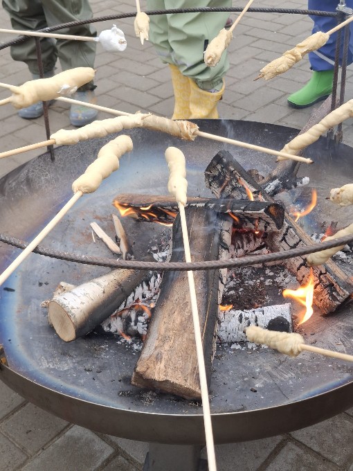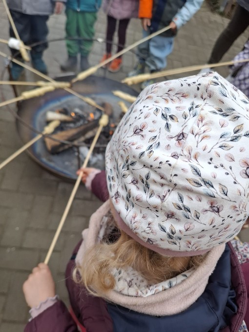 Gemeinsam verbrachten die Kinder und das Team eine gemütliche und fröhliche Zeit am Feuer. Für besondere Begeisterung sorgte das Stockbrot, das die Kinder mit viel Freude selbst über den Flammen backten. Dazu wurde selbstgemachter Kräuterquark gereicht, der bei allen großen Anklang fand.